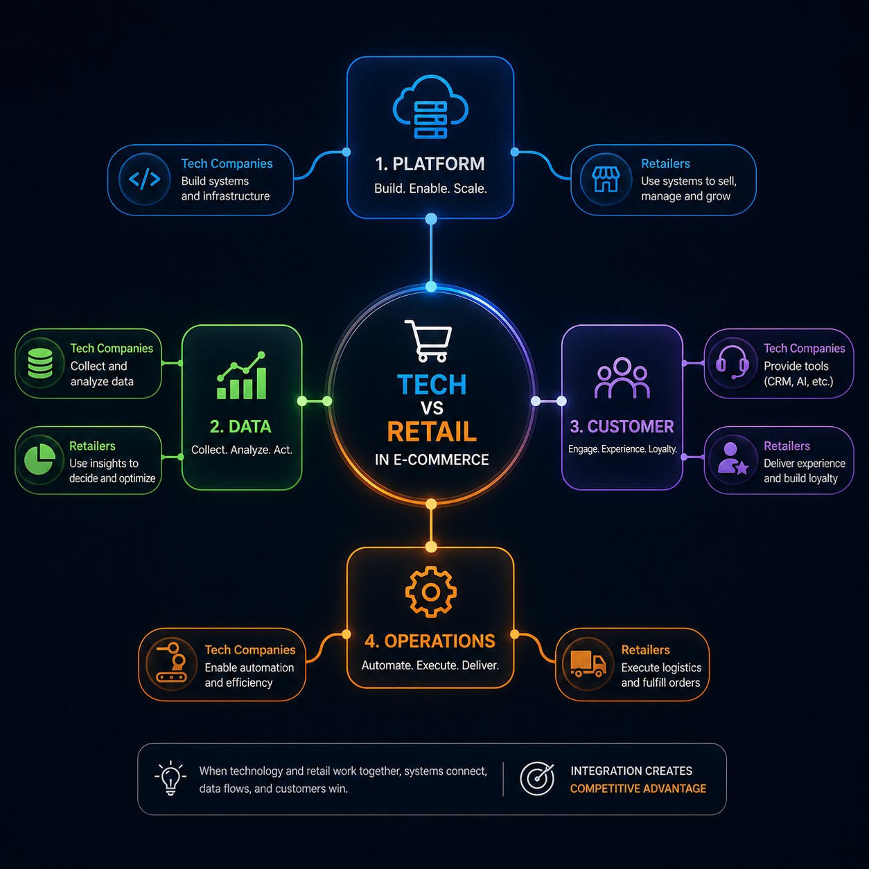 Competitive advantage happens when technology and retail operations are integrated. Platforms, data, customer experience, and operations must work together as one system.